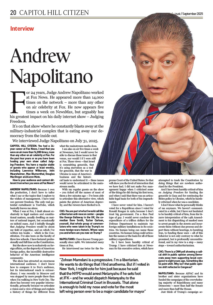 [For the complete q/a format Interview with Andrew Napolitano, get the 40-page print newspaper at capitolhillcitizen.com]